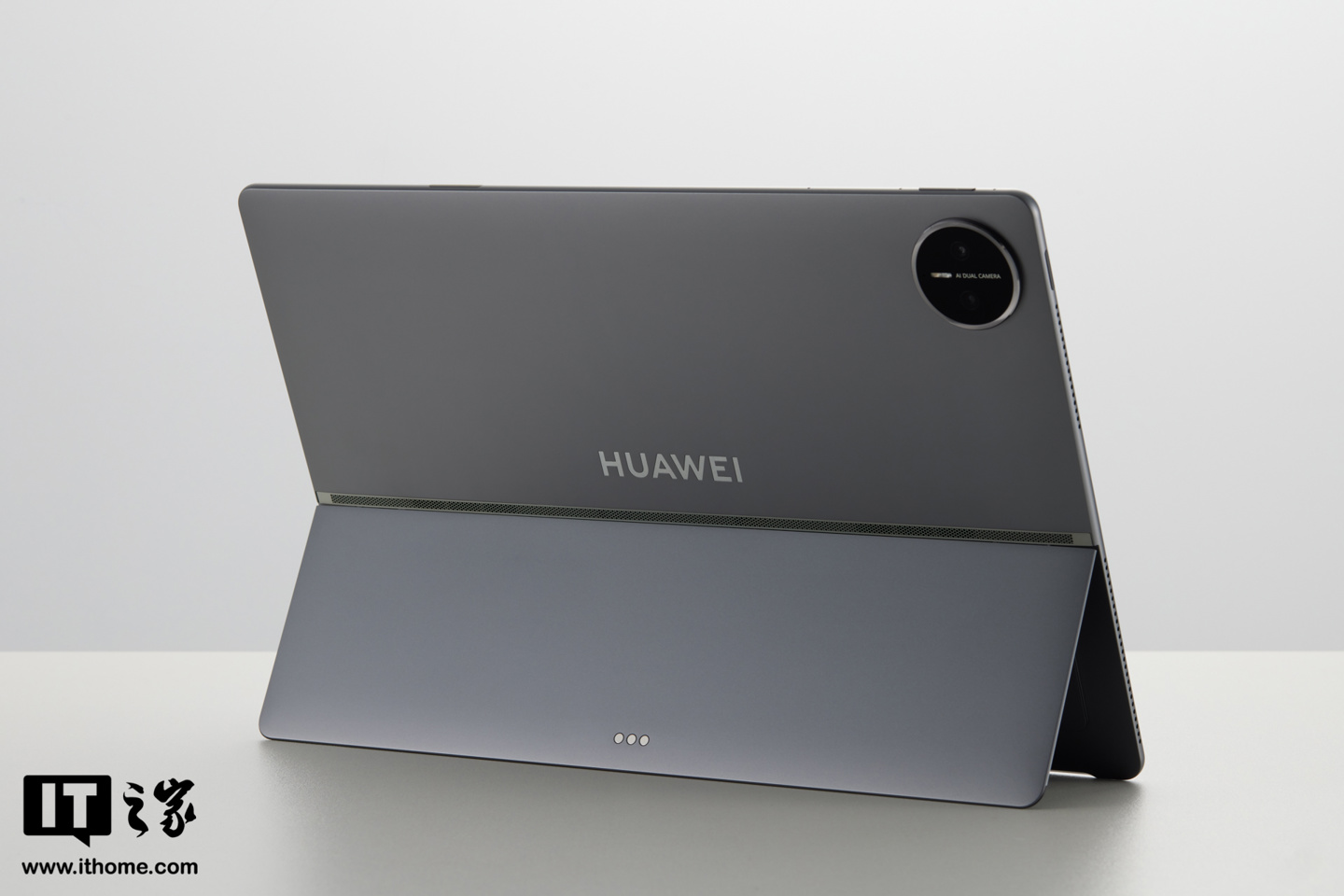 影音体验上,该机配备高低音分频 6 扬声器,通过 Audio Vivid 认证。首发搭载的“移动全景声”技术,可与 HUAWEI FreeClip 2 耳机协同,基于虚拟声对象渲染算法,实现平板与耳机的联合声场渲染。此外,针对会议场景,设备还集成了 AI 智慧通话录音、AI 降噪及智能天线算法,以保障通信与收音质量。