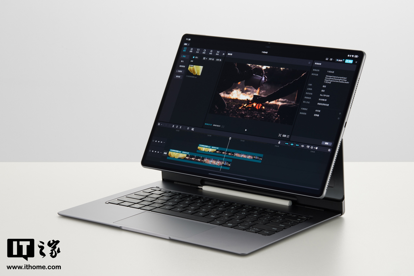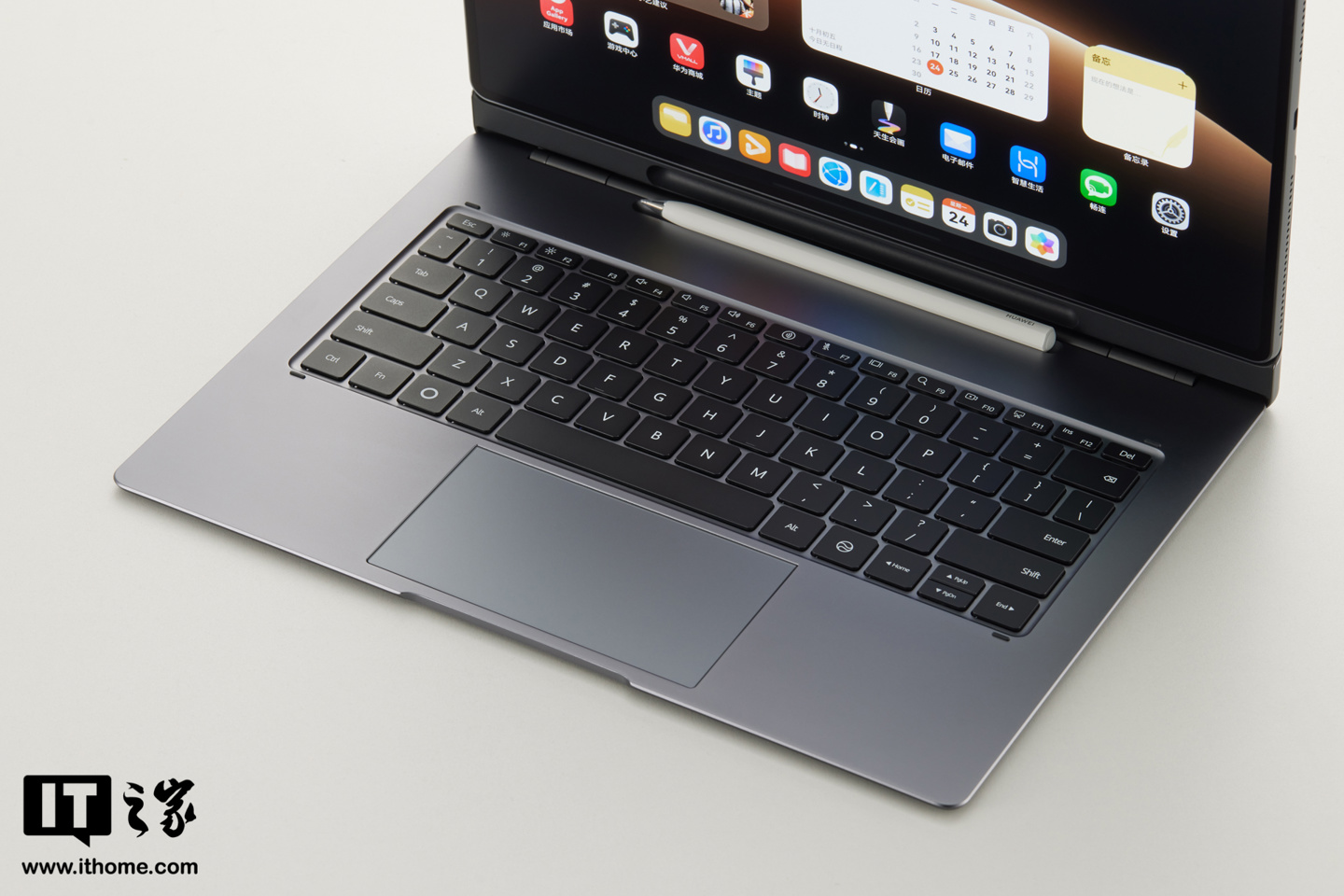 形态设计上,华为 MatePad Edge 接上全新的华为星跃悬浮键盘,它就是一台标准的轻薄笔记本,从侧面看,平板悬浮于键盘之上。配合全新发布的华为星跃悬浮键盘,可呈现标准笔记本形态。键盘支持无极悬停与最大开合角度调整,拥有 1.8mm 高键程及全域压力感应触控板,还原了传统 PC 的输入与操控体验。