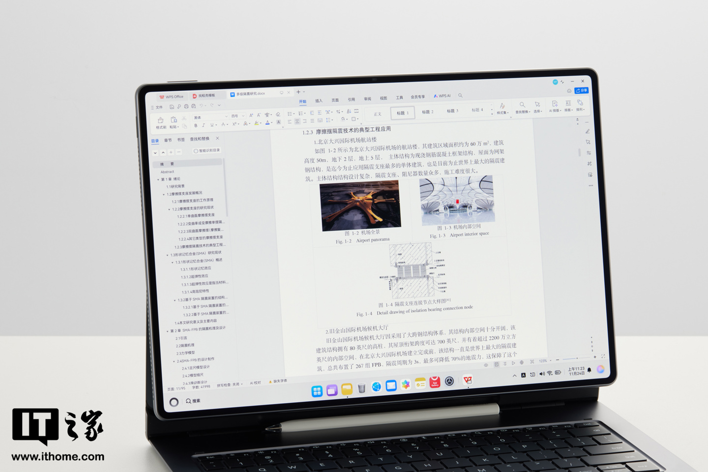 机身侧面,独特的“贯穿式出风腰线”引起了我们的注意。这是华为 MatePad Edge 创新散热架构的外显特征,近 4000 个风孔巧妙地融入机身线条之中,既保证了双风扇、双 VC 的散热效率,又没有破坏整体的简约美感。