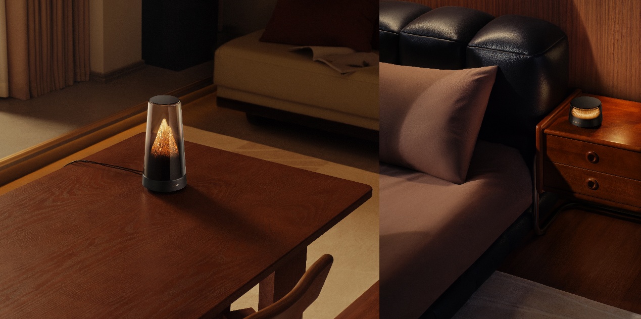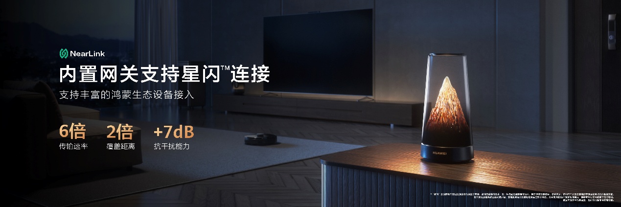 灯效可随日出日落和天气变化演绎,或通过华为智慧生活 App 自定义色温、亮度。交互设计巧妙,轻拍顶部即可调节亮度,支持接入鸿蒙智家,通过小艺语音控制。