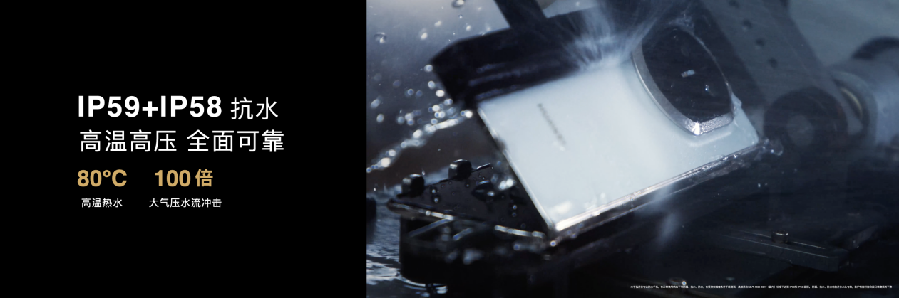 为了验证其可靠性,华为 Mate X7 在出厂前经历了极其严苛的测试,包括 80℃ 高温高压水流近距离喷淋严苛测试。整机更是具备了 IP58 和 IP59 的高级别防尘抗水性能,即便面对强劲水柱喷射或高温喷淋,依然能保持坚固。真正成为折叠扛把子,抗水、抗弯折、抗冲击、抗跌落。可靠安心,不止一面。