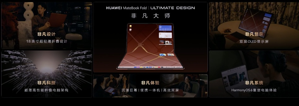 结合IT之家此前报道,华为 MateBook Fold 非凡大师鸿蒙折叠电脑于今年 5 月发布,重量为 1.16kg,薄至 7.3mm 合上时只有 13 英寸大小,展开后则可以呈现 18 英寸“全球最大折叠屏”。