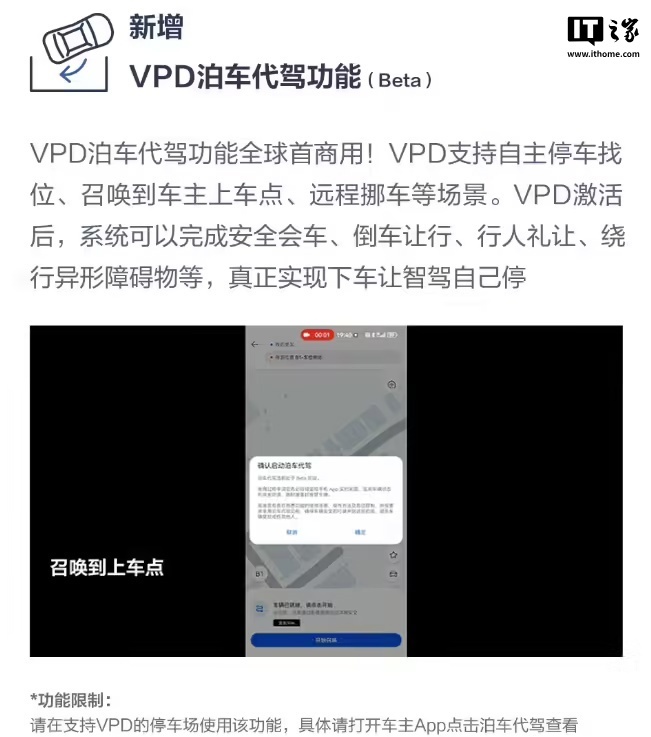 据IT之家此前报道,去年 12 月,华为乾崑智驾 ADS 3.2 版本发布,升级 VPD 泊车代驾功能。VPD 支持自主停车找位、召唤到车主上车点、远程挪车等场景;VPD 激活后,系统可以完成安全会车、倒车让行、行人礼让、绕行异形障碍物等。