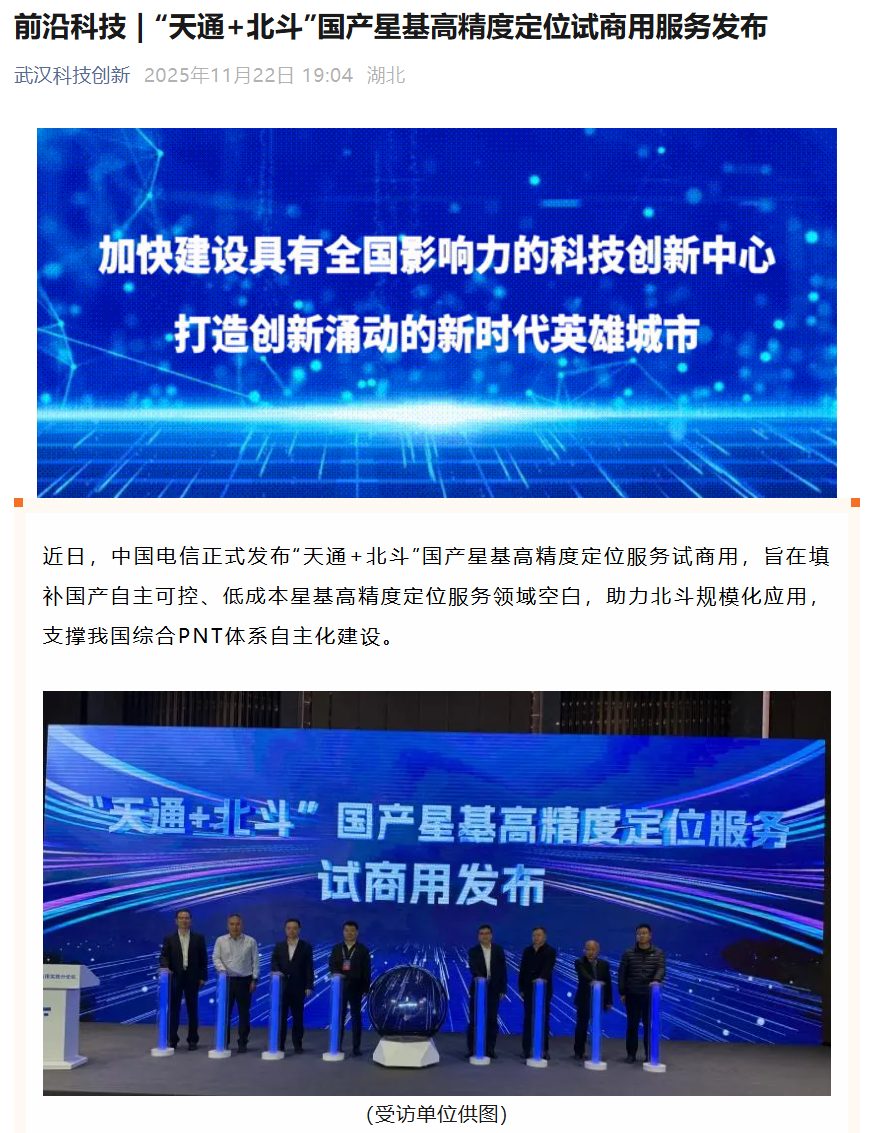 IT之家 11 月 24 日消息,据中国邮电报今日报道,空天地一体卫星互联网创新应用实践论坛于近日在湖北省武汉市举办。会议期间,中国电信正式发布“天通 + 北斗”国产星基高精度定位服务试商用,旨在填补国产自主可控、低成本星基高精度定位服务领域空白,助力北斗规模化应用,支撑我国综合 PNT 体系自主化建设。