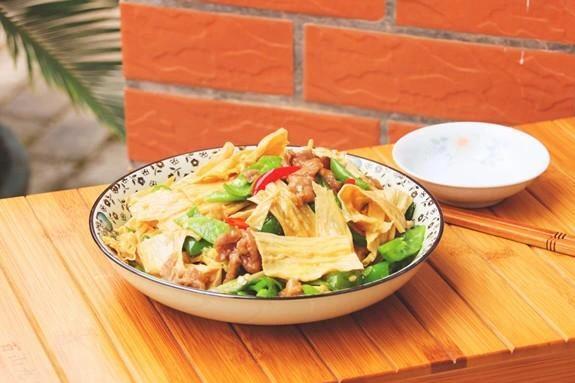 腐竹的魅力在于它啥菜都能搭。想吃清爽的?泡好的腐竹切段,焯水后捞出来,撒点辣椒、葱花、花椒,热油一浇,再加点盐和醋,拌一拌,凉拌腐竹就上桌了,配酒下饭都绝了。想吃点带劲的?腐竹炒肉丝,配上辣椒,香得让人停不下筷子。平时吃一碗饭,有这道菜,保准你能干下两碗!荤的素的,炖炒凉拌,腐竹都能hold住,厨房里没它还真不行。