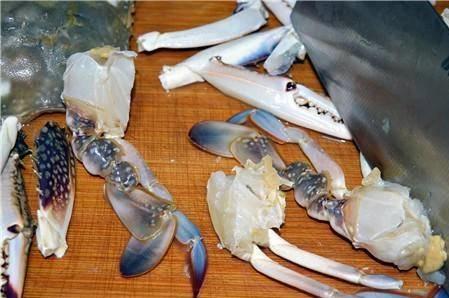 清洗螃蟹得仔细,不然腥味跑不掉。拿把小刷子,把梭子蟹从头到尾刷一遍,特别是腿缝和壳上的泥沙。蟹腮一定要去掉,那是脏东西,留着影响口感。洗干净后,把每只螃蟹剁成四块,方便入味也容易炒。切好后,抓一小碗面粉,把蟹块裹上薄薄一层,裹均匀了才好吃。
