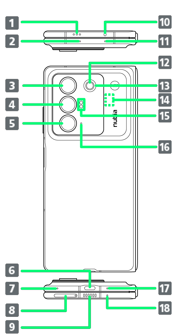 Nubia Flip 3 在机身背部靠近转轴的位置设置了两个 pogo pin 接口(弹簧针接口)。这种设计通常用于连接专属配件,例如扩展模块或专用保护壳,暗示了该机型可能具备更丰富的扩展功能。此外,手机的电源键和音量键均位于机身右侧。