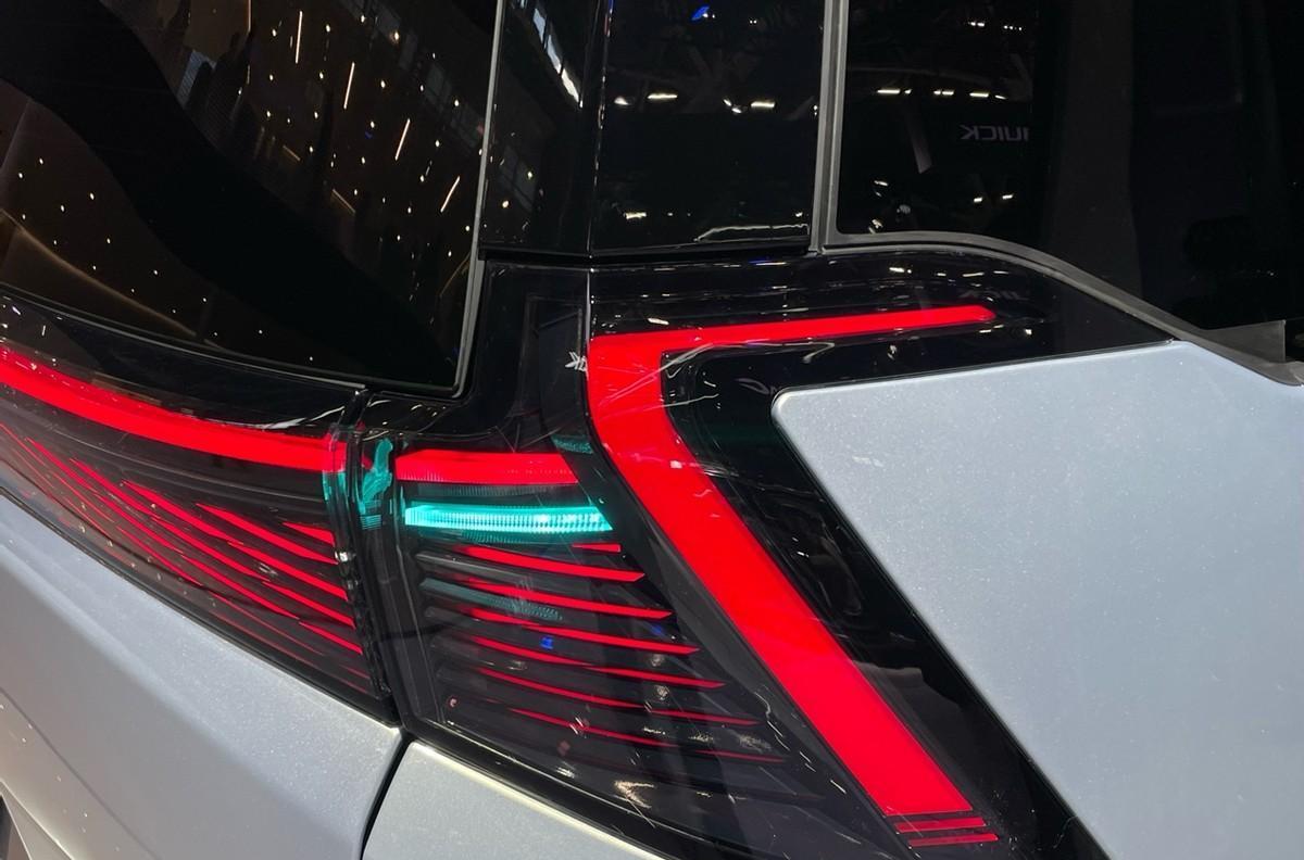 来到侧面,至境世家采用熏黑车顶,辅以镀铬饰条,营造出悬浮式车顶。与GL8不同的是,至境世家侧裙的线条变得更加锋利,后车窗造型也变得更加规整。此外,在至境世家的前翼子板处还可以见到侧后摄像头,再结合车尾的辅助驾驶小蓝灯配置来看,城市/高速NOA、全场景泊车等辅助驾驶功能不会缺席。车尾部分,至境世家采用了熏黑的贯穿式尾灯,点亮后犹如羽翼般,搭配可发光的“BUICK”标识,提升辨识度。