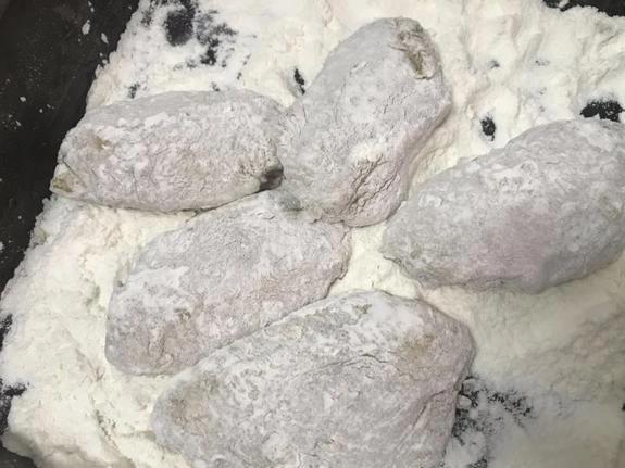鸡翅下锅前得“化妆”。用厨房纸巾擦掉表面的腌料,裹上一层面粉,薄薄一层就行。裹好放一边静置2分钟,再裹一次面粉,轻轻抖掉多余的粉。面粉太多,炸出来油腻,吃着像啃面团,口感差远了。裹好面粉的鸡翅,表面干爽,炸出来才脆。