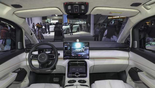 车身三围5360/1998/1940毫米,轴距为3200毫米,有着充沛的空间表现。车尾部分,车顶扰流板也得到延续,分叉状的尾灯也是精髓,智驾小蓝灯提升了科技感。后保险杠部分还略微突出,提升了层次感的属性。在内饰部分当然也不会有变化,悬浮式大型液晶屏配液晶仪表盘组成双屏系统,Hud抬头显示进行辅助,平直的中控台面也有左右两侧扩散式的设计,和尾灯形成呼应,怀挡机构等元素不会缺席,得益于超长的车身,第2排有着相当夸张的空间表现。