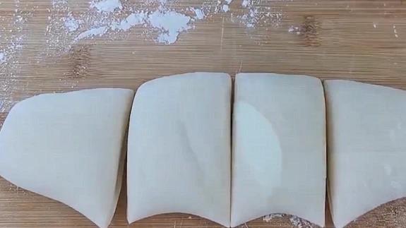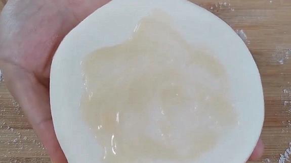 油酥咋弄?简单!20克面粉,20毫升热油,烫得滋滋响,搅匀就行。这油酥是饼鼓起来的秘密武器,抹在面皮上,烙的时候才能分层,鼓出大泡。面团醒好后,搓成长条,分成4份,每份搓圆、按扁,擀成薄片。抹上油酥,包起来,收口朝下再擀薄。擀的时候轻点,别把皮弄破,不然鸡蛋液漏了,饼也瘪了。
