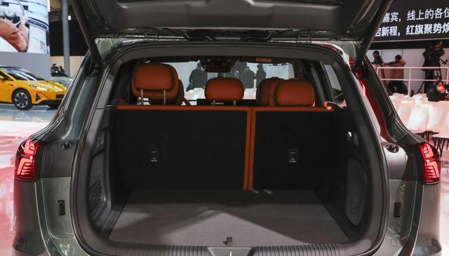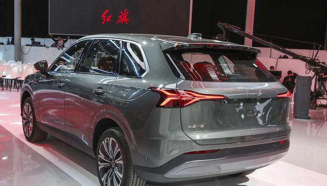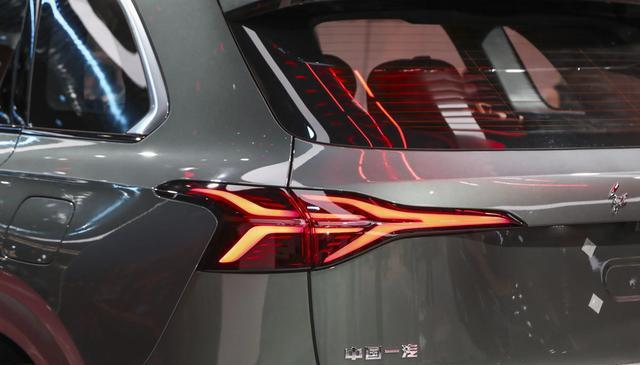车身侧面,宽大修长的线条,也显得时尚大气,车顶略带下坠,幅度不算明显,D柱倾斜角度较大,相对纤薄,提升了年轻活力,简洁的腰线,大尺寸轮毂都增强了时尚感。A柱下方的红旗车标也更加简化一些,没有那么夸张的表现。车尾部分,尾灯采用了双分叉状造型堆叠,中央并不贯穿,也显得相对克制,车顶扰流板不会缺席,尾箱线条明显突出,后保险杠部分还有双层装饰,让整车的风格形成统一。