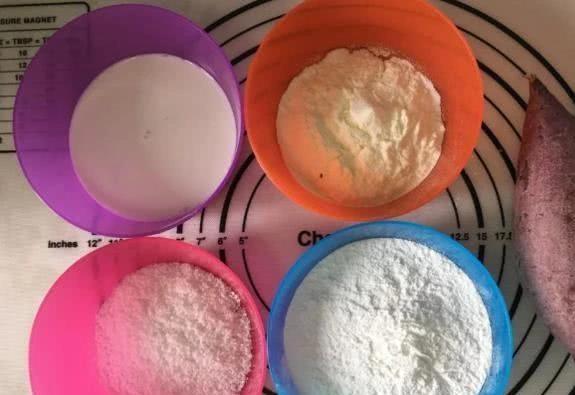 先说材料,准备起来一点不麻烦。紫薯100克,糯米粉50克,纯牛奶60克,奶粉22克,再抓点椰蓉撒在外面。紫薯得挑那种紫得发亮的,口感更甜更绵。糯米粉是灵魂,少了它就没那股软糯劲儿。牛奶和奶粉让口感更顺滑,想吃甜一点的,可以加点炼乳,但别加太多,不然甜到发腻就不好吃了。