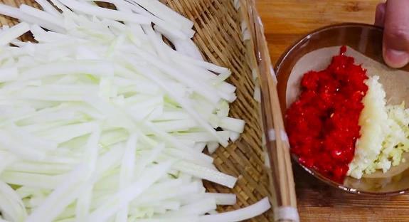 先把白菜帮洗干净,切成细丝。切丝的目的是让它更容易入味,炒的时候也熟得快。切好后泡在清水里,洗掉泥沙,再捞出来沥干水,备用。这一步很重要,洗干净的白菜帮炒出来才清爽。