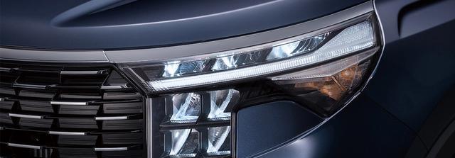 起亚智跑前脸的战斧式LED前大灯造型锐利,增强了车头整体的视觉冲击力,点亮后也能保证夜间行车的照明效果,无论是清晨通勤还是夜间返程,都能提供清晰视野,同时独特的造型让其在车流中更具辨识度。车尾的垂直炫影LED组合尾灯采用纵向布局,与战斧式前大灯形成呼应,点亮后光影效果独特,夜间行驶时能让后方车辆快速察觉,提升行车安全,在昏暗停车场也能凭借尾灯快速定位车辆。力量型大包围(含双排尾管设计)强化了车身的硬朗风格,大包围能在轻微剐蹭时保护车身,双排尾管则增添了运动气息,无论是日常通勤还是郊外出游,都能展现车辆的活力感。铝合金轮毂不仅提升了车身侧面的精致度,为车辆增添一抹运动气息。