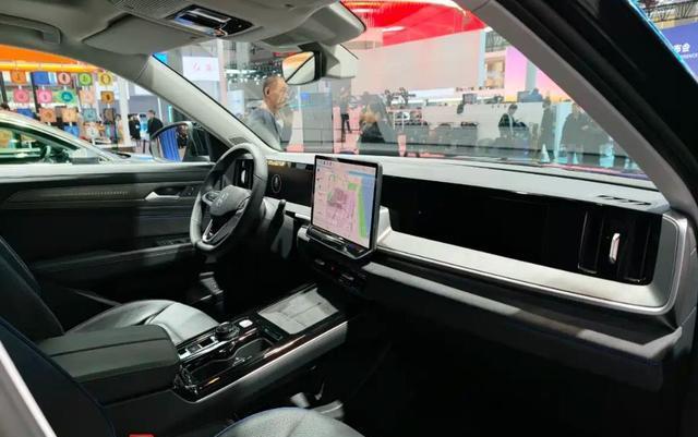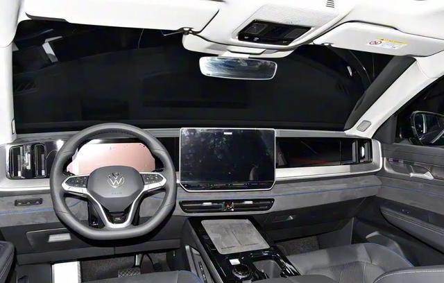 内饰方面,新车紧跟大众新一代内饰风格,偏向主驾驶席一侧。配备15寸大型悬浮中控屏幕与11.6寸副驾屏实现双屏交互,方向盘为家族化设计。同时,新款车型采用怀挡设计,为中控台下方留出更多空间。作为大五座SUV,座椅整体延续大众风格。