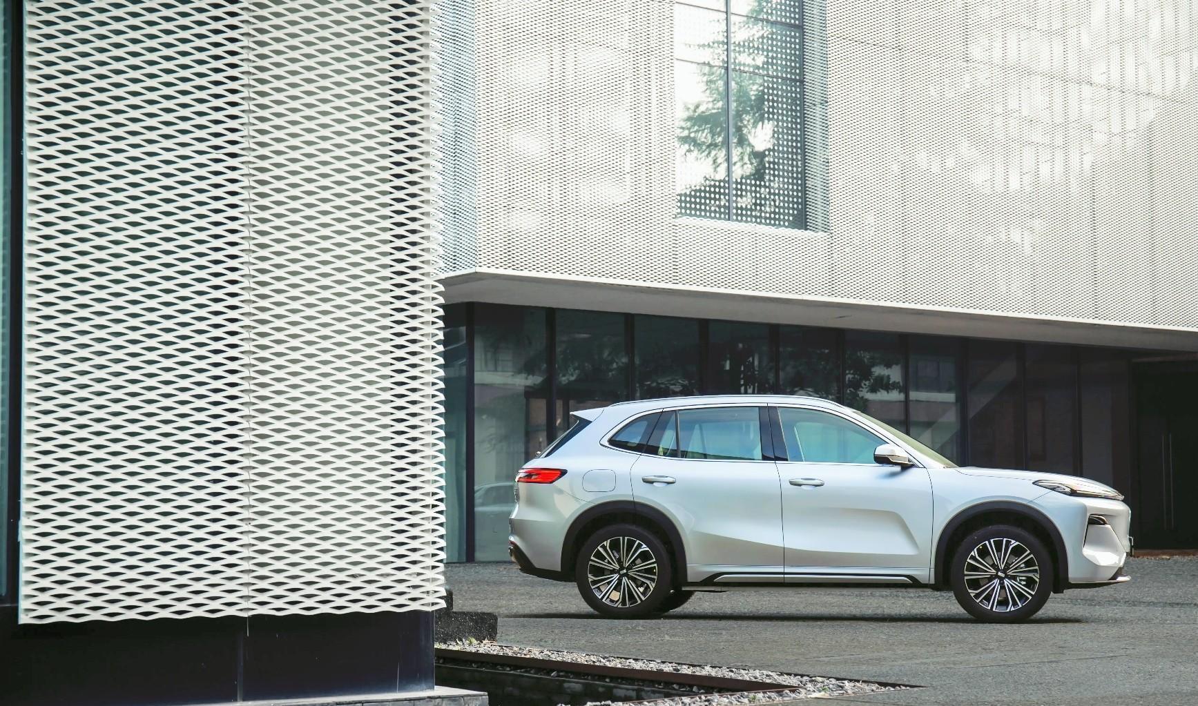 而来到侧面,整个车身比例、腰线、以及侧窗的轮廓,都呈现出SUV该有的端庄体面感和厚重感,新车尺寸上的表现也很不错,车长达4740毫米,车宽1905毫米,车高1685毫米,轴距达到了2755毫米。