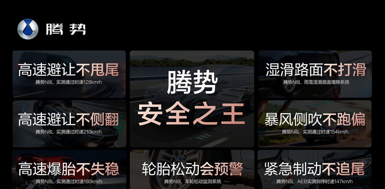 另外凭借易三方,腾势N8L还实现了128km/h高速避让不甩尾、210km/h高速避让不侧翻、180km/h高速爆胎不失稳、154km/h暴风侧吹不跑偏、147km/h AEB自动紧急制动、轮胎松动会预警、雨雪内八模式等超越同级的安全能力,守护每一次家庭出行。