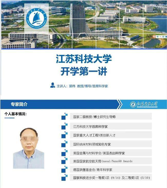 2023年,郭伟被江苏科技大学人才引进,获评该校“首席科学家”,并受聘为博士生导师。他曾自称陕西省高考状元,拥有海外研究经历,是国家重大人才工程A类创新人才,身兼国际纳米材料知名专家等多个头衔。