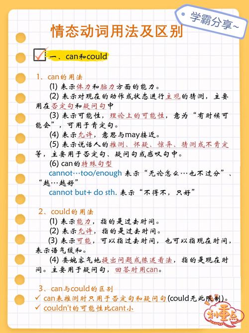 实义动词与情态动词在英语中的运用有显著区别。实义动词是完整的行动描述,分为及物动词和不及物动词,前者需要直接宾语,后者则无需。如“eat”、“run”等。谓语是描述主语行为或状态的陈述,通常位于主语之后,由动词构成。简单谓语由一个动词构成,复合谓语则由多个动作组成。