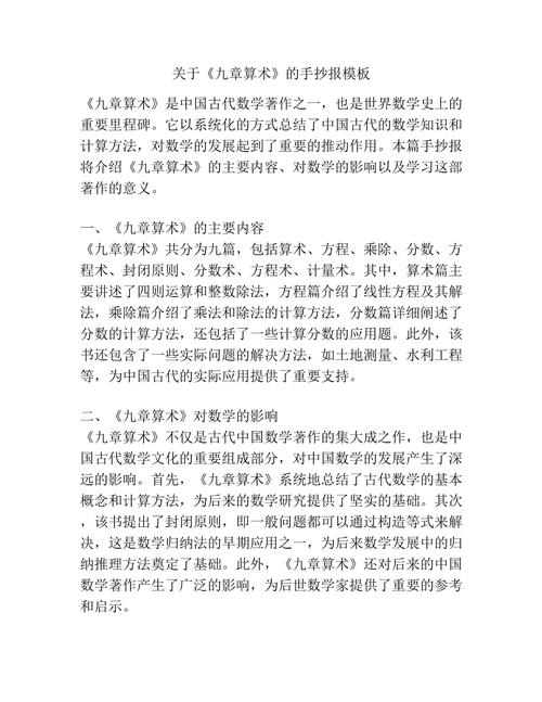 3、《九章算术》成书于东汉朝代。以下是关于《九章算术》成书朝代的详细说明:成书时间:《九章算术》最后成书最迟在东汉前期,但其基本内容在东汉后期已经基本定型。历史背景:根据研究,西汉的张苍、耿寿昌曾经对《九章算术》做过增补。这表明在西汉时期,《九章算术》的内容已经开始形成和积累。