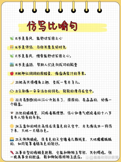 1、仿写句子 看,柿子要成熟了,脸涨得红彤彤的。草地像被鲜花装点成的花衣。太阳是那么灿烂;看稻谷,稻穗已经成熟了,低着头仿佛在向大地致敬。稻田像一块被月光镀亮的银毯,闪闪发光,美不胜收。仿写 仿写,模仿范文练习作文。是我国语文教育的传统方式。