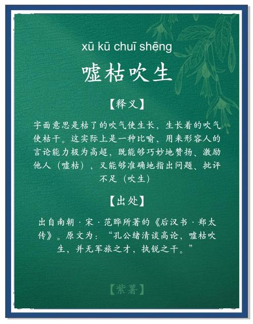 成语中,以“枯”字开头的例子丰富多彩,它们各自承载着深刻的意义与出处。首先是“枯苗望雨”,这个成语形象地描绘了殷切盼望的情景。它源自《东周列国志》,生动展现了人们对于及时雨水的渴望,如同枯萎的幼苗期盼着滋润,以重焕生机。