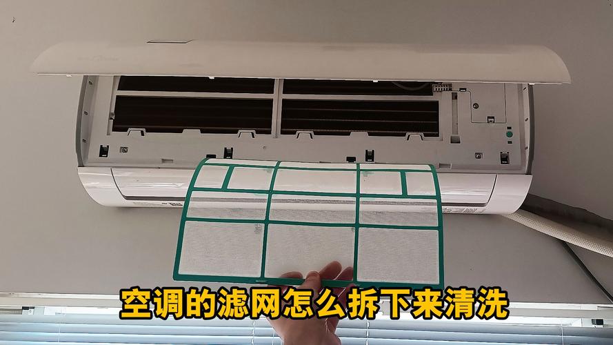 4、定位进风口与面板该机型采用侧进风设计,过滤网通常位于空调正面上方盖板内侧。双手轻按盖板两侧凹陷处(部分机型需向外拉动或按压卡扣),听到“咔嗒”声后,将整块盖板向前倾斜约30度缓慢拉开。