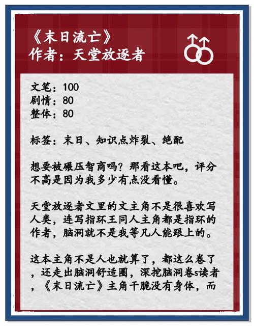 以下是一些类似《重启家园》的末日小说推荐:《末日蟑螂》 作者:一根灯芯。这部小说描绘了末日降临后,主角如何在艰难的环境中生存,并逐渐成长为强者的故事。其紧张***的情节和丰富的角色塑造深受读者喜爱。《最终逆战》 作者:月潭。
