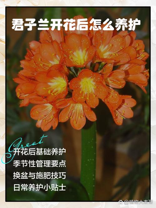 5、水分管理:维持土壤的适度湿润,特别是在夏季,应每天进行浇水,以满足君子兰的生长需求。关于君子兰的补充信息:君子兰,别名剑叶石蒜、大叶石蒜,属于石蒜科君子兰属的多年生草本植物,是一种受欢迎的观赏花卉。原产于南非南部。
