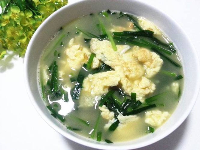 韭菜鸡蛋汤中的成分有助于降低血脂和血压,对心血管健康有益。提高免疫力:鸡蛋中的蛋白质和韭菜中的维生素等营养成分共同作用,可以提高人体免疫力,增强身体抵抗力。综上所述,韭菜鸡蛋汤不仅营养丰富,还具有促进消化、温肾补肝、降血脂血压以及提高免疫力等多重功效。
