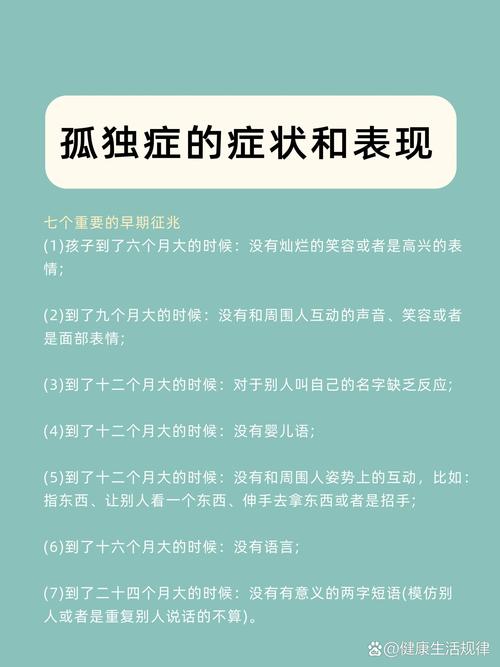 1、孤独症,又称自闭症,是一种复杂的神经发育障碍,其核心特征及影响如下:核心特征孤独症通常在儿童早期显现,持续影响个体的社交、沟通及行为模式。患者存在三方面典型表现:社交障碍:难以理解或表达情感,对社交线索(如他人表情、语气)不敏感,缺乏眼神交流和肢体语言,导致人际交往中显得孤立。