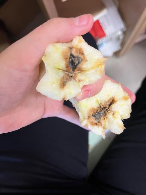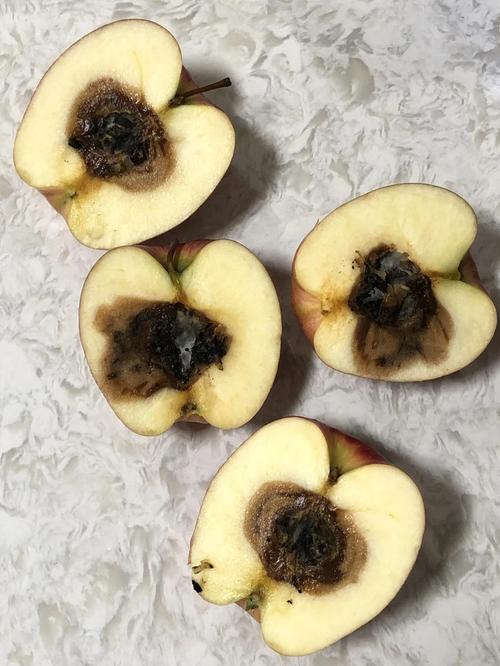 3、烂心病第二种情况是烂心病的苹果,它是外表看起来还很完整,但是切开一看,里面已经烂成了棕色,那么,这种苹果最好还是不要吃了,而且,它的味道吃起来也不怎么样,甚至还还有一点点苦涩。所以,当我们咬了一口觉得有些苦的时候,最好把它切开看一看,如果是徾心病的就不要吃了。