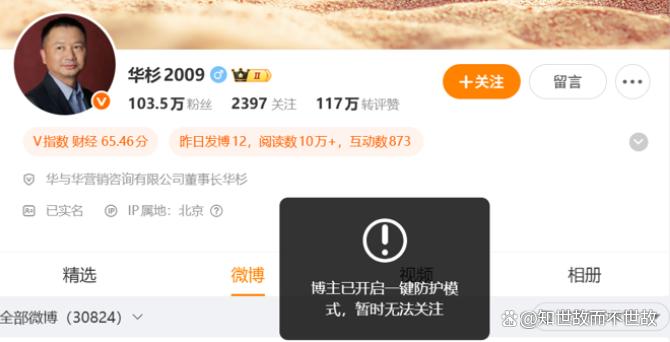 他的微博账号开启了一键防护模式,无法关注,自动拦截恶意私信和评论。这种防御姿态与他此前在社交媒体上的活跃表现形成鲜明对比。