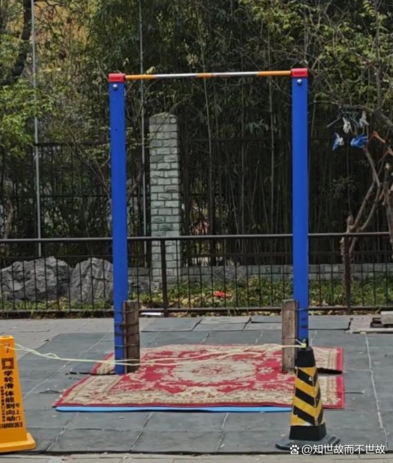 11月1日傍晚,一位60多岁的老人在这里用绳子将手固定在单杠上,连续完成了14个大回环动作后,突然四肢脱力、失去意识。
