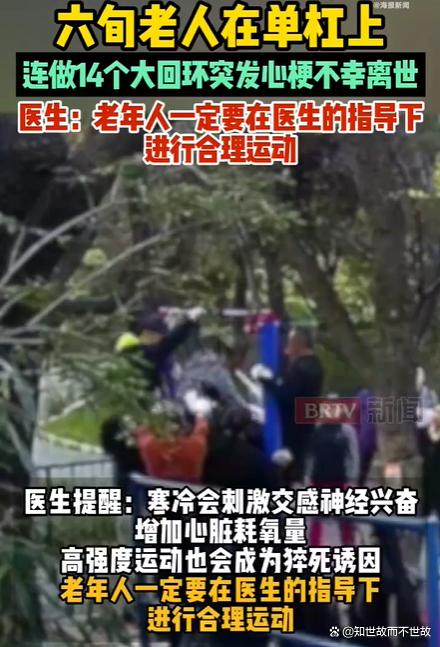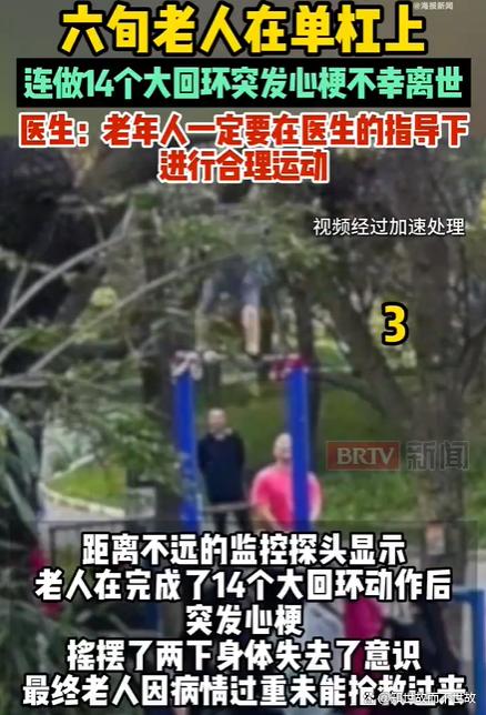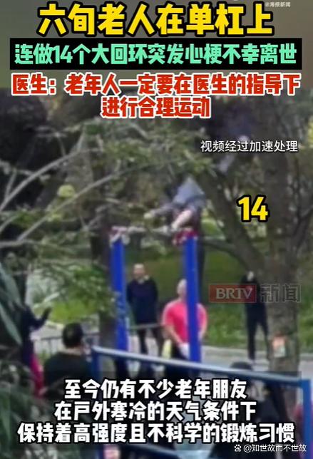 在连续完成14个大回环后,老人身体突然摇摆了两下,随后便一动不动。