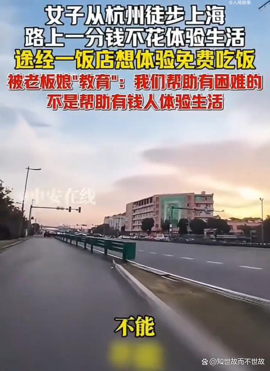 近日,一则女子从杭州徒步到上海“一分钱不花体验生活”的视频引发热议。根据视频显示,该女子在街上向路人求助时称:“我是徒步从杭州到上海的,这一路上,所有的吃喝住问题,都得自己解决,我能请你帮个忙吗?”结果被路人直接拒绝。