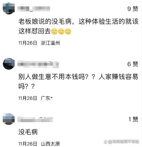 事件曝光后,网络评论几乎一边倒地支持老板娘的态度。许多网友认为,真正的体验生活应该靠自己的劳动,而非转嫁负担给他人。