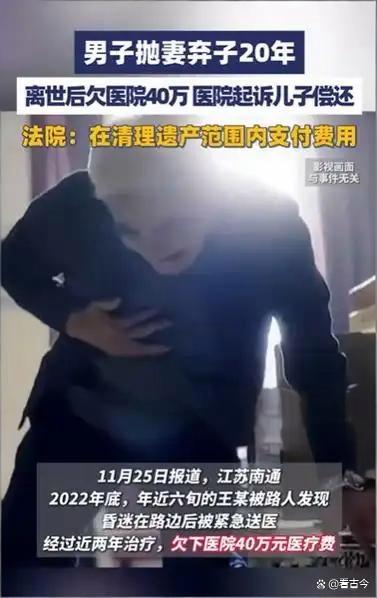 都说“父债子偿”是老黄历,可当“甩手掌柜”老爸突然躺进ICU,欠下40万医疗费,儿子该不该掏钱?最近崇川法院审理的这起案件,让网友直呼“比电视剧还狗血”,结局却让人忍不住拍手叫好!