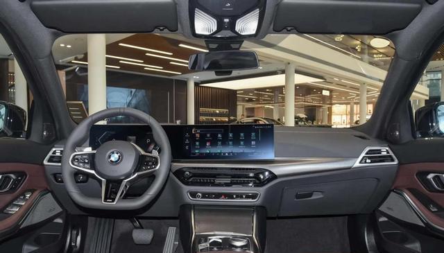 宝马3系的内饰给人一种精致温馨的感觉,其三辐式多功能运动方向盘,采用真皮材质(部分车型为翻毛皮),手感比较舒适,并具备换挡功能,前方的12.3英寸彩色全液晶仪表盘,与14.9英寸的中控屏连体,其中中控屏采用iDrive操作系统,支持4G网络、前排语音识别、卫星导航等功能,顶配车型还支持面部识别功能,刷脸解锁、支付更方便。