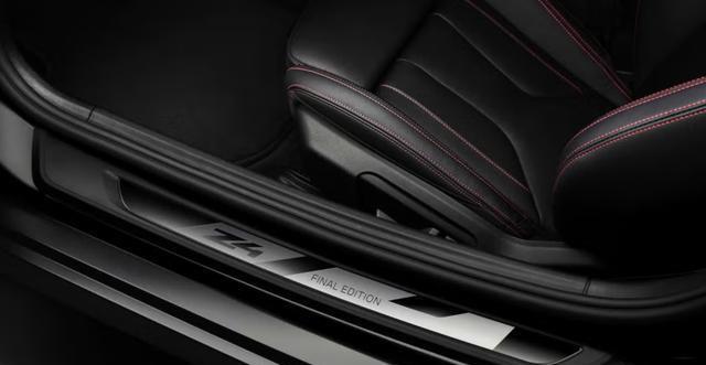 车内用黑色皮革 + Alcantara 包裹座椅、门板和中控台,红色缝线穿起座椅与脚垫,M 三色安全带添了份运动气,车门门槛的 Final Edition 铭文,明明白白告诉你,这不是普通 Z4。