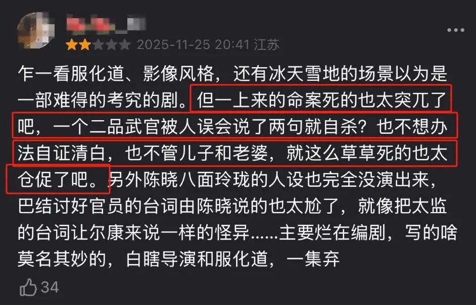 陈晓的演技没得说,黄志忠、李纯、吴樾等老戏骨的表演也都在线,可这剧情实在是让人有些失望。