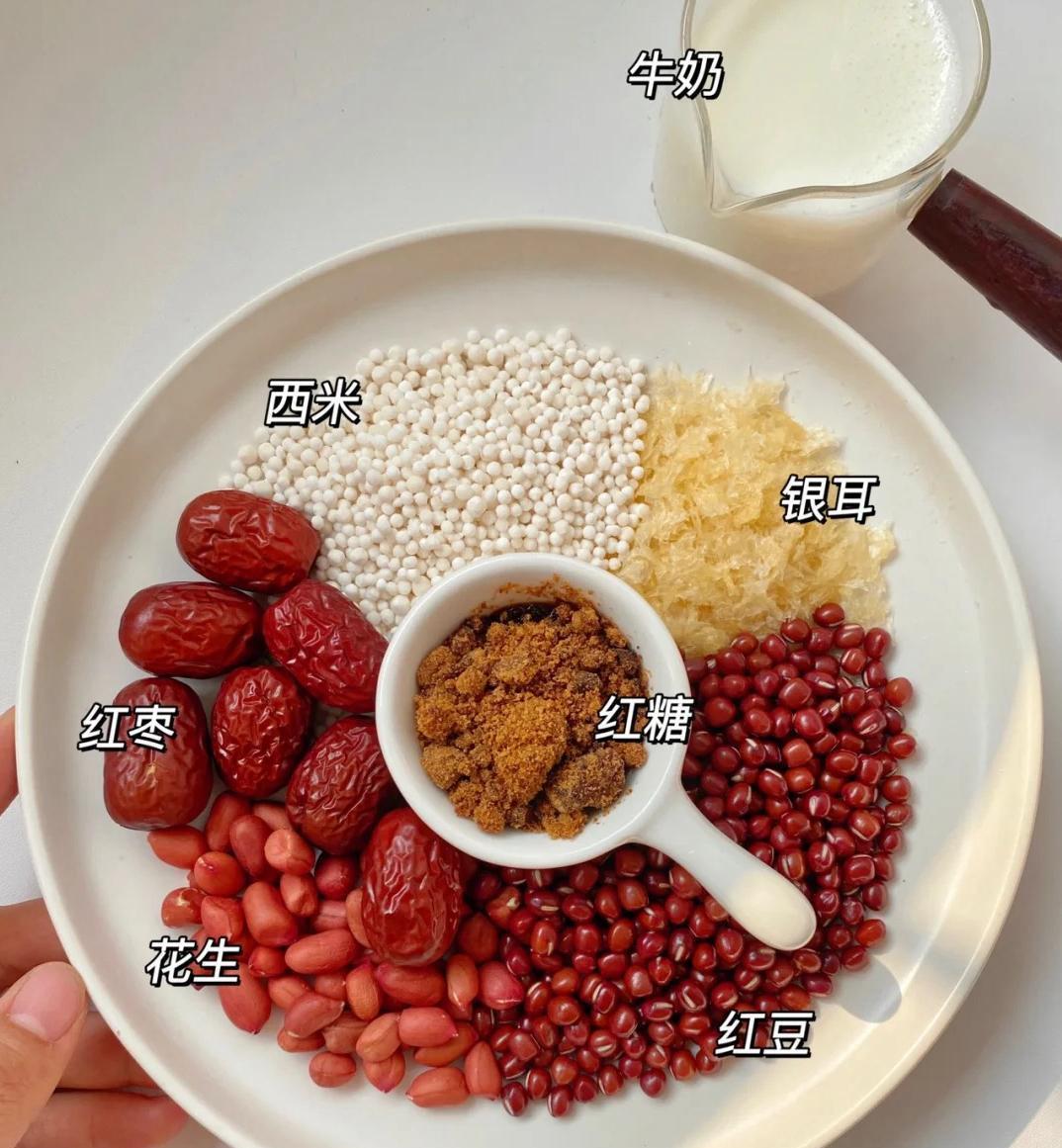 图片来源于网络 侵删这碗饮品的每一样食材都是对女孩子特别好的东西!红豆、西米、红枣、红糖、花生、银耳、牛奶,这些可都是滋补养颜的佳品啊!特别是红豆和红枣,那可是补气血的绝配!再加上花生和红糖,哎呀,那味道,简直是甜到心里去了!