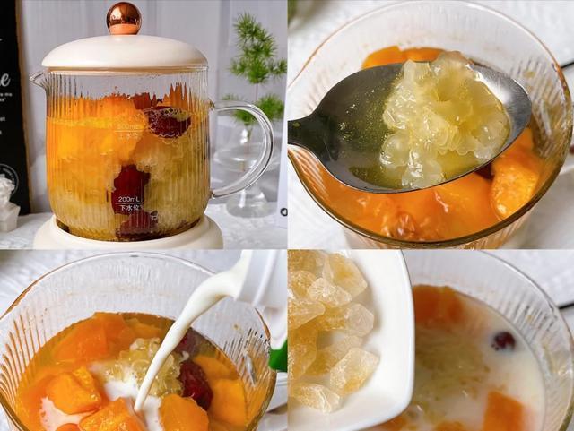 图片来源于网络 侵删木瓜软软糯糯的,银耳丝滑爽口,再加上牛奶的香气,这口感搭配得恰到好处。舀上一勺放进嘴里,木瓜的香甜、银耳的软糯、牛奶的丝滑,各种味道在嘴里交织在一起,那感觉,就像在舌尖上开了一场美食派对,好吃到停不下来。