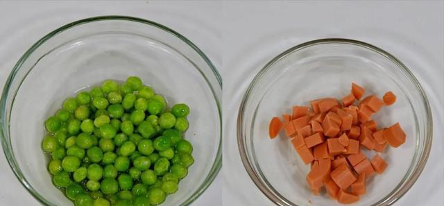 图片来源于网络 侵删再把熟豌豆粒准备好,火腿肠也切成丁,大小跟豆腐丁差不多就行。