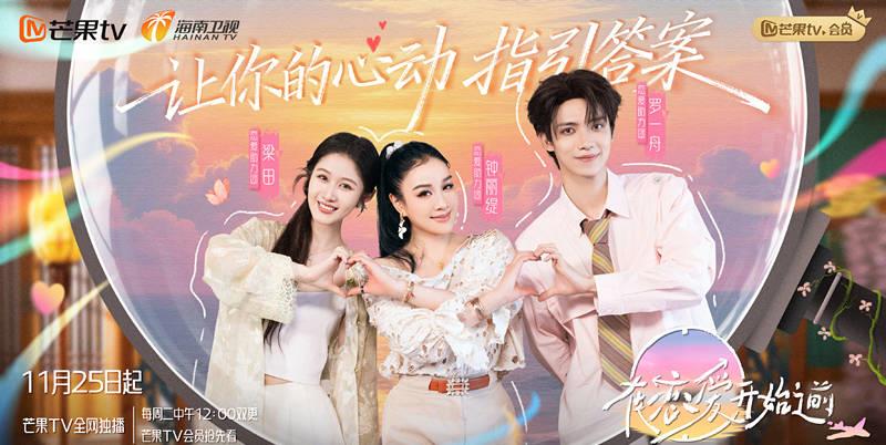 11月25日,《在恋爱开始之前》第一期和第二期内容在芒果TV上线,直接开启了首播模式。这档恋爱综艺由梁田、罗一舟和钟丽缇担任观察员,多位青年男女担任恋爱素人嘉宾。这档恋爱综艺的模式,和其它恋综区别不是很大,依旧是男女素人嘉宾们一个简短的VCR介绍之后,开始让他们彼此认识,继而,明星嘉宾们开始茶会话模式。梁田、罗一舟教人谈恋爱,大有一些恋综“小时代”的意思,悬浮、架空又花枝招展。