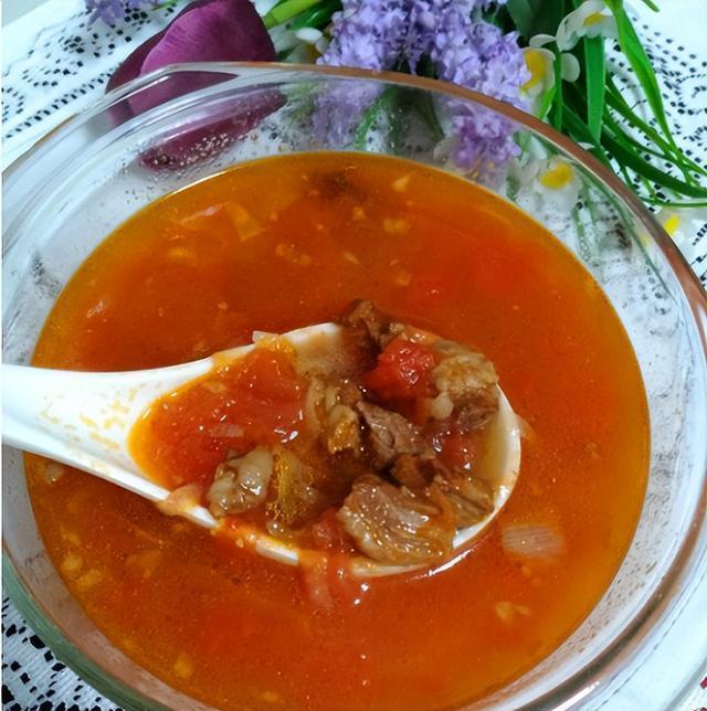 二、西红柿牛腩汤: 以西红柿和牛腩慢炖而成,富含蛋白质和维生素C,有助于增强免疫力。