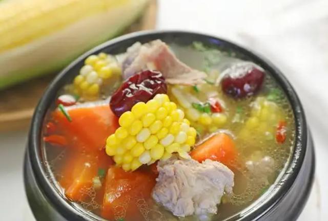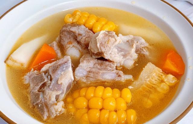 三、玉米排骨汤: 以玉米和猪排骨熬煮而成,提供丰富纤维和蛋白质,有助于促进消化和增加饱腹感。