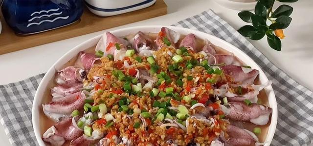 图片来源于网络 侵删蒜蓉粉丝蒸鱿鱼,这个名字听起来就让人食指大动,它将鲜美的鱿鱼、香气逼人的蒜蓉以及吸味的粉丝巧妙结合,既保留了鱿鱼的原始风味,又融入了蒜香和粉丝的独特口感,这样的一道菜品,无论是作为家宴的拿手好菜,还是朋友聚会时的下酒菜,都能让人赞不绝口。