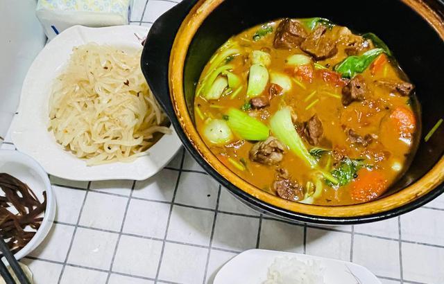 图片来源于网络 侵删4、加入开水适量大火烧开,小火慢炖60分钟,加盐再炖5分钟,尝一下软烂后加香菜和上海青, 再加入味精出锅开吃。